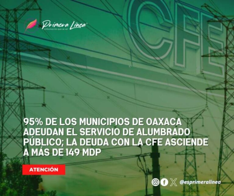 95% de los municipios de Oaxaca adeudan el servicio de alumbrado público; la deuda con la CFE asciende a más de 149 mdp El 95 por ciento de los municipios de Oaxaca están endeudados con la Comisión Federal de Electricidad (CFE) por el… 14 noviembre, 2024