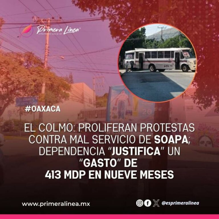 El colmo: proliferan protestas contra mal servicio de Soapa; dependencia “justifica” un “gasto” de 413 mdp en nueve meses A pesar de que el gobierno del estado justificó durante los primeros nueve meses del año una inversión de 413.5… 14 noviembre, 2024