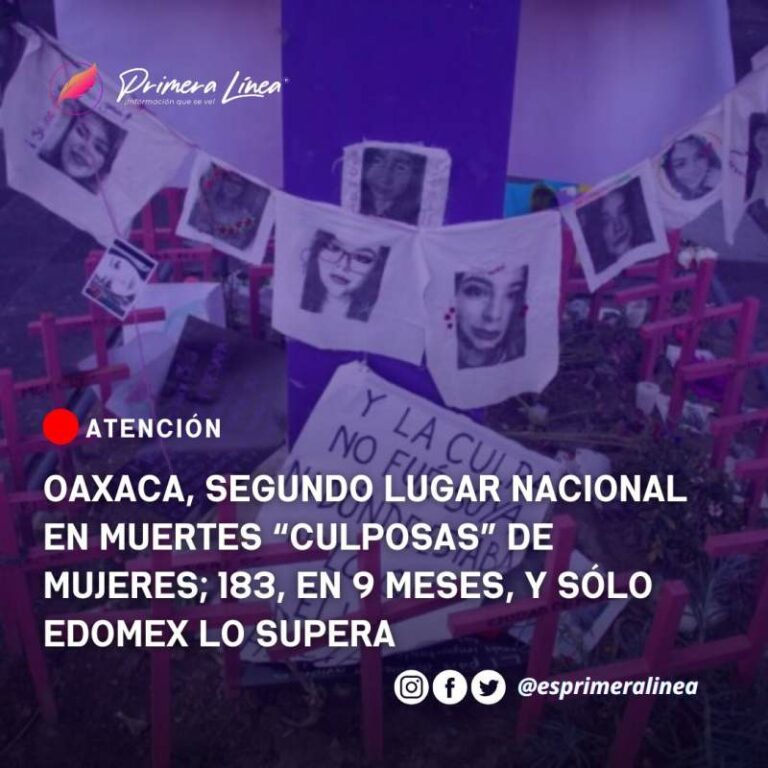 Oaxaca, segundo lugar nacional en muertes “culposas” de mujeres; 183, en 9 meses, y sólo Edomex lo supera Con un total de 183 víctimas, Oaxaca permanece como el segundo estado del país con el mayor número de casos… 14 noviembre, 2024