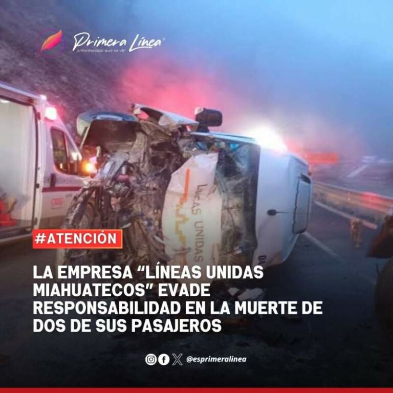 La empresa “Líneas Unidas Miahuatecos” evade responsabilidad en la muerte de dos de sus pasajeros La empresa “Líneas Unidas Miahuatecos” evade responsabilidad en la muerte de dos de sus pasajeros 6 noviembre, 2024