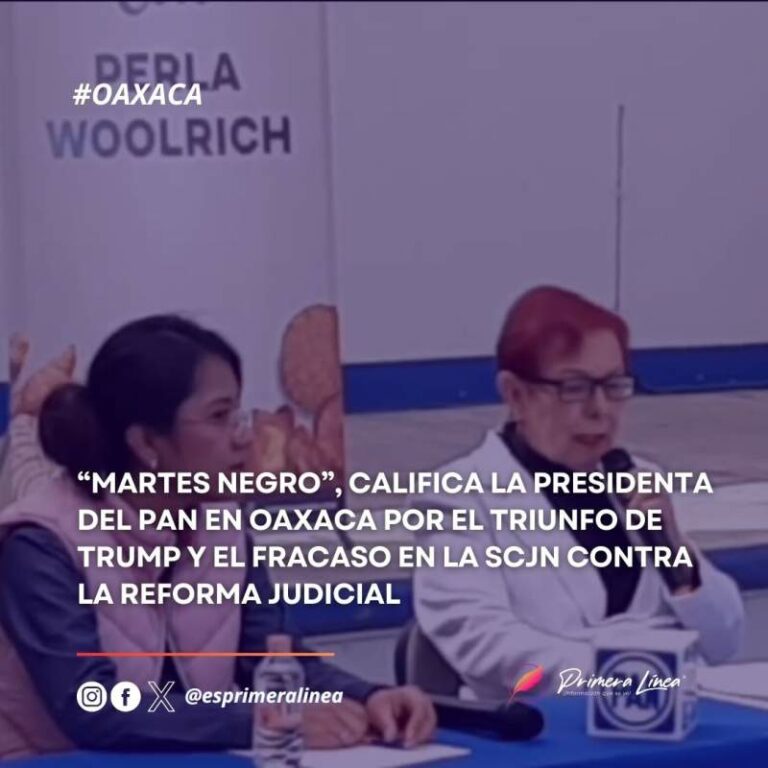 “Martes negro”, califica la presidenta del PAN en Oaxaca por el triunfo de Trump y el fracaso en la SCJN contra la reforma judicial La presidenta estatal del PAN en Oaxaca, Perla Woolrich, afirmó que México vivió ayer un “martes negro” tras el triunfo… 6 noviembre, 2024