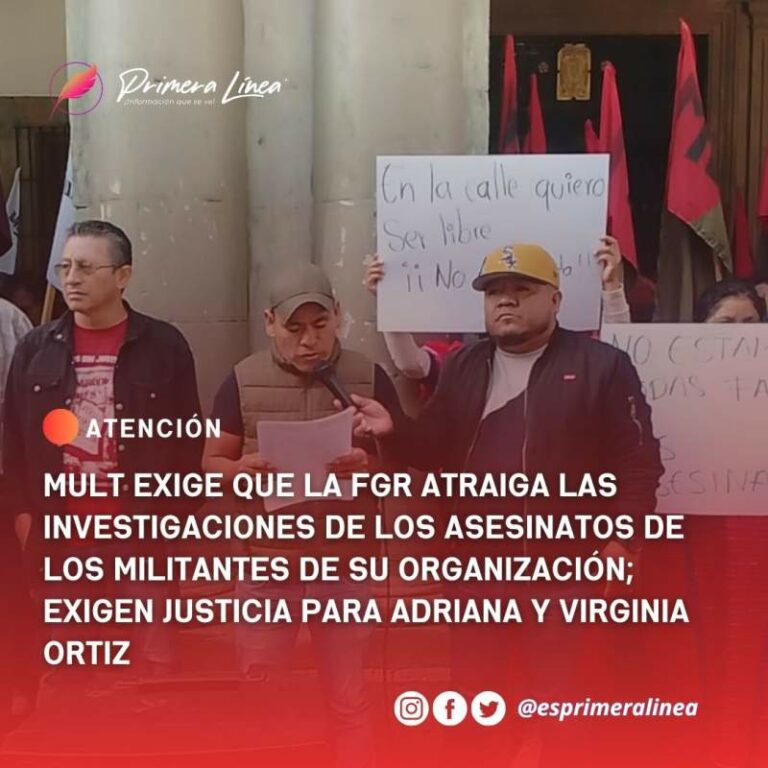 MULT exige que la FGR atraiga las investigaciones de los asesinatos de los militantes de su organización; exigen justicia para Adriana y Virginia Ortiz El Movimiento de Unificación y Lucha Triqui (MULT) exigió que la Fiscalía General de la República (FGR) atraiga las investigaciones… 6 noviembre, 2024
