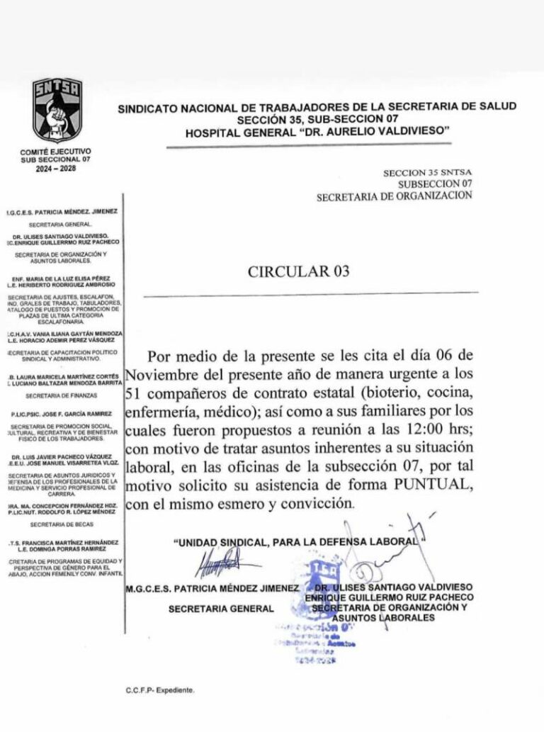 Siguen protestas: Trabajadores de Hospital Civil exigen a IMSS-Bienestar garantizar bonos de fin de año y denuncian intento de despido de 51 empleados La Subsección 07 de trabajadores del Hospital Civil “Aurelio Valdivieso” determinó continuar con la asamblea permanente y las protestas comenzadas… 6 noviembre, 2024