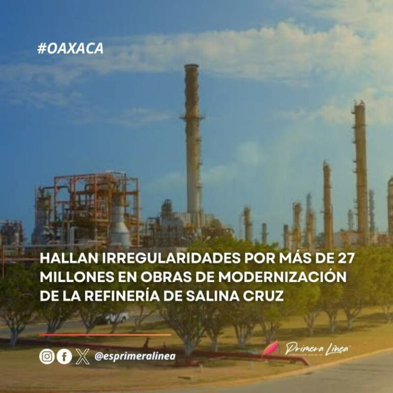 Hallan irregularidades por más de 27 millones en obras de modernización de la refinería de Salina Cruz La Auditoría Superior de la Federación (ASF) detectó pagos en exceso por 27 millones 71 mil 288.99 pesos en las… 3 noviembre, 2024