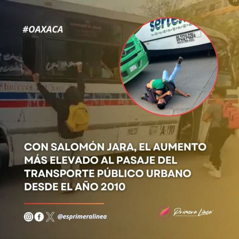 Con Salomón Jara, el aumento más elevado al pasaje del transporte público urbano desde el año 2010 El gobierno de Salomón Jara Cruz autorizó el incremento más elevado, desde el año 2010, a la tarifa del pasaje… 31 octubre, 2024