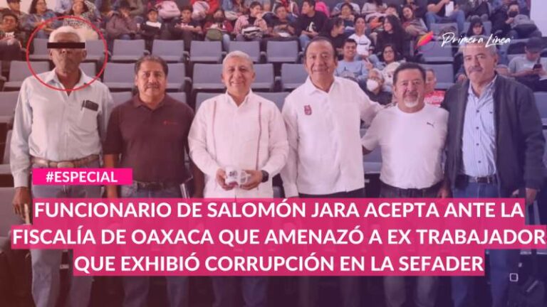 Funcionario de Salomón Jara acepta ante la Fiscalía de Oaxaca que amenazó a ex trabajador que exhibió corrupción en la Sefader Eusebio Atanacio Morga Herrera, coordinador de Proyectos de la Secretaría de Fomento Agroalimentario y Desarrollo Rural (Sefader) 1 noviembre, 2024