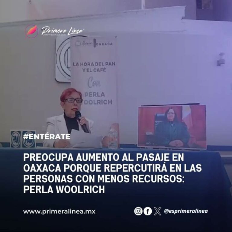 Preocupa aumento al pasaje en Oaxaca porque repercutirá en las personas con menos recursos: Perla Woolrich La presidenta estatal del PAN, Perla Woolrich, afirmó que es preocupante el aumento a la tarifa del pasaje en el… 30 octubre, 2024