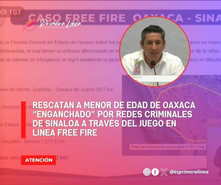 Rescatan a menor de edad de Oaxaca “enganchado” por redes criminales de Sinaloa a través del juego en línea Free Fire El fiscal general de Oaxaca, Bernardo Rodríguez Alamilla, informó que se rescató a un menor de 14 años de edad… 30 octubre, 2024