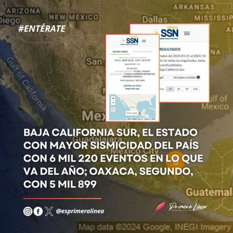 Baja California Sur, el estado con mayor sismicidad del país con 6 mil 220 eventos en lo que va del año; Oaxaca, segundo, con 5 mil 899