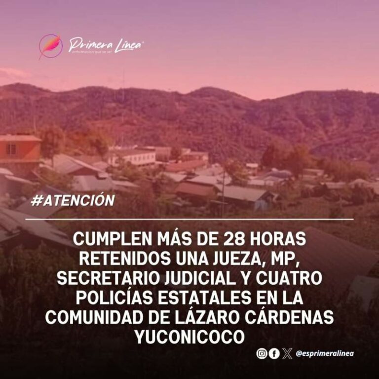 Cumplen más de 28 horas retenidos una Jueza, MP, secretario judicial y cuatro policías estatales en la comunidad de Lázaro Cárdenas Yuconicoco La Jueza Mixta de Primera Instancia de Santiago Juxtlahuaca, un secretario judicial, un agente del ministerio público, cuatro policías estatales,… 23 octubre, 2024
