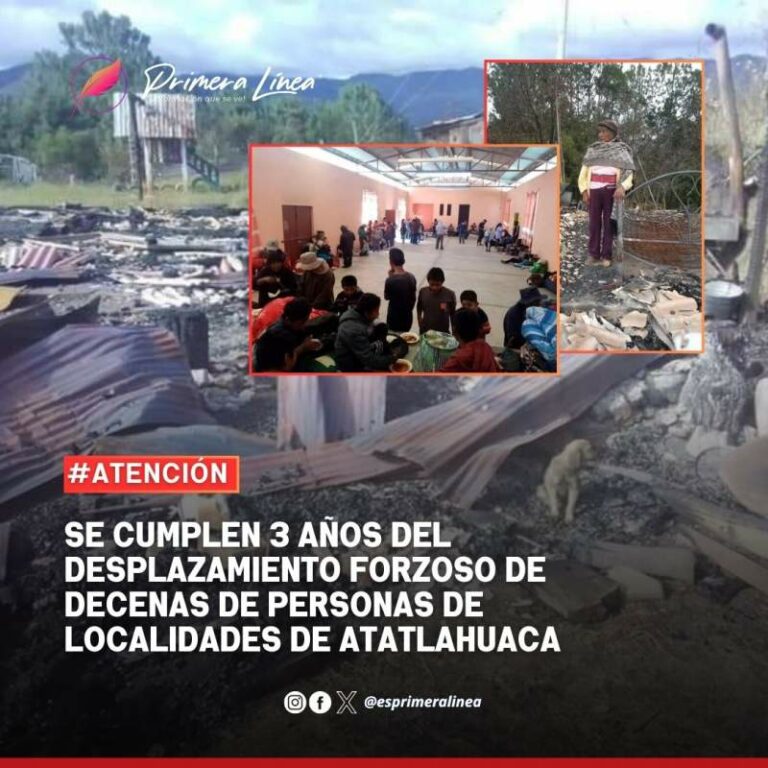 Se cumplen 3 años del desplazamiento forzoso de decenas de personas de localidades de Atatlahuaca Hoy se cumplieron tres años del desplazamiento forzado interno que sufrieron decenas de personas, entre ellas niños, niñas, mujeres y… 23 octubre, 2024