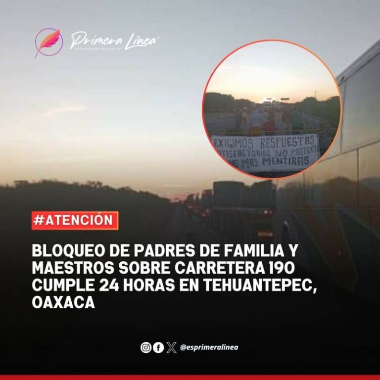 Bloqueo de padres de familia y maestros sobre carretera 190 cumple 24 horas en Tehuantepec, Oaxaca Padres de familia y maestros de la primaria Independencia de la colonia La Soledad de Santo Domingo Tehuantepec cumplieron 24… 23 octubre, 2024