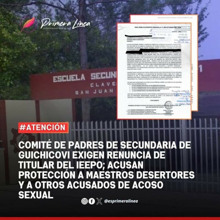 Comité de Padres de secundaria de Guichicovi exigen renuncia de titular del IEEPO; acusan protección a maestros desertores y a otros acusados de acoso sexual Madres y padres de familia de la Escuela Secundaria Técnica número 101 con sede en San Juan Guichicovi 23 octubre, 2024