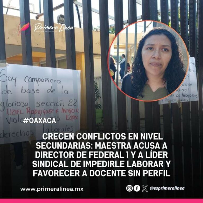 Crecen conflictos en nivel Secundarias: maestra acusa a Director de Federal 1 y a líder sindical de impedirle laborar y favorecer a docente sin perfil Los conflictos al interior del nivel de Secundarias continúan dentro de la Sección 22 de la Coordinadora Nacional de Trabajadores… 11 octubre, 2024