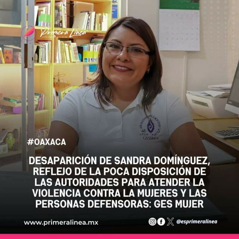 Desaparición de Sandra Domínguez, reflejo de la poca disposición de las autoridades para atender la violencia contra la mujeres y las personas defensoras: GES Mujer La presidenta del Grupo de Estudios Sobre la Mujer “Rosario Castellanos” (GESMujer), María del Rosario Martínez Miguel, aseguró que la… 10 octubre, 2024