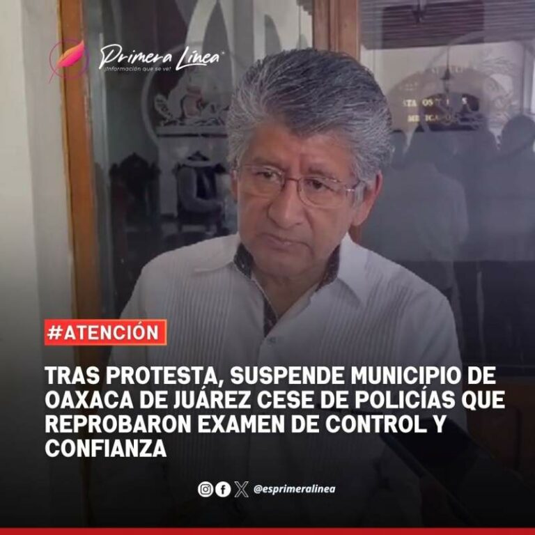 Tras protesta, suspende municipio de Oaxaca de Juárez cese de policías que reprobaron examen de control y confianza El presidente municipal de Oaxaca de Juárez Francisco Martínez Neri informó este jueves que la administración municipal determinó dejar en… 10 octubre, 2024