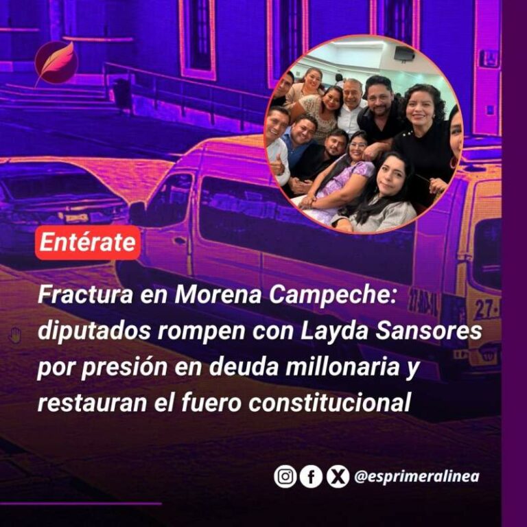 Fractura en Morena Campeche: diputados rompen con Layda Sansores por presión en deuda millonaria y restauran el fuero constitucional Once de los 16 diputados de Morena en el Congreso de Campeche rompieron con la gobernadora Layda Sansores, acusándola de… 4 febrero, 2026